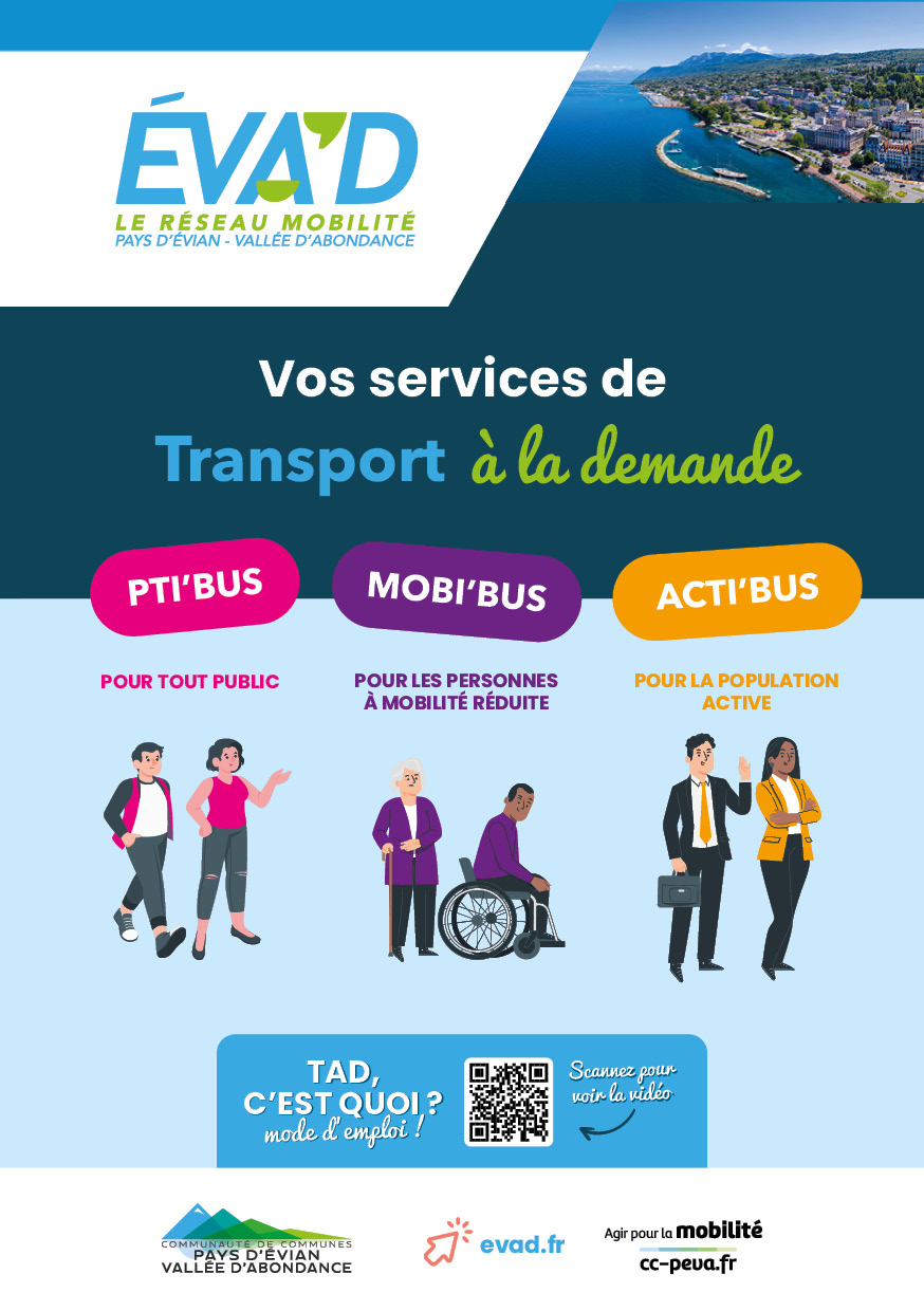 Les services de transport à la demande sont ouverts aux personnes majeures, non scolaires, et habitant le territoire de la Communauté de Communes pays d’Évian vallée d’Abondance. (Pour les personnes mineures, scolaires ou non-résidentes du territoire, il existe des lignes régulières et des navettes saisonnières.)